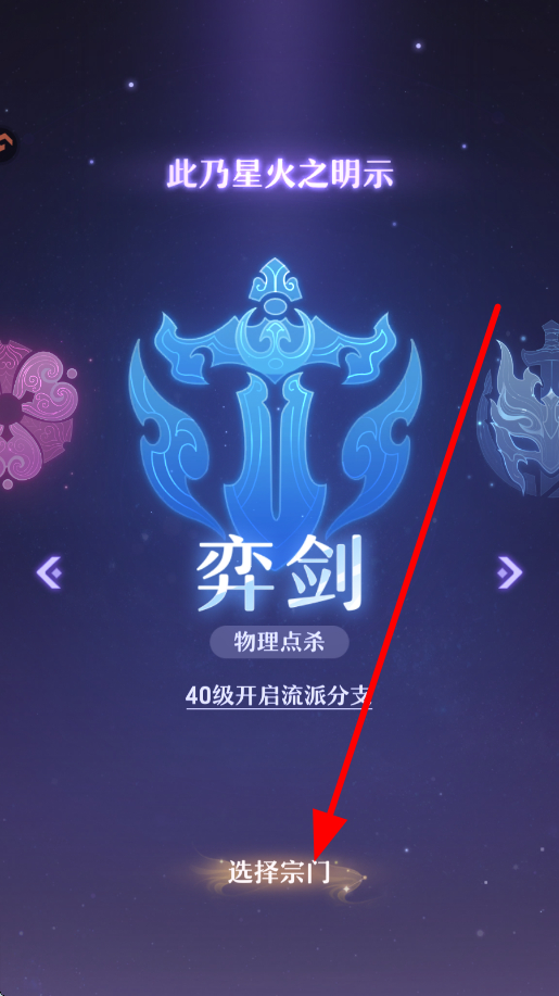 1、宗门选择时,会有不同风格的宗门呈现,像弈剑这类宗门,有着鲜明的特色定位,玩家可根据自身喜好,点击选择宗门,开启在该宗门的修行之旅。