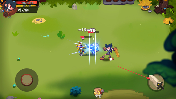 2、当敌人进入攻击范围,点击右下角攻击按钮对敌人进行攻击,注意观察敌人血量变化如出现的-12,-10。