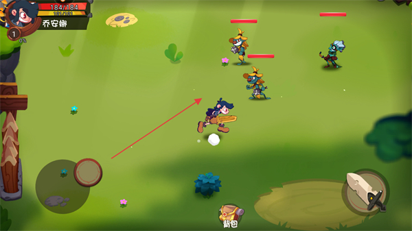 1、进入游戏场景,通过左下角虚拟摇杆控制角色如乔安瀚移动,靠近敌人。