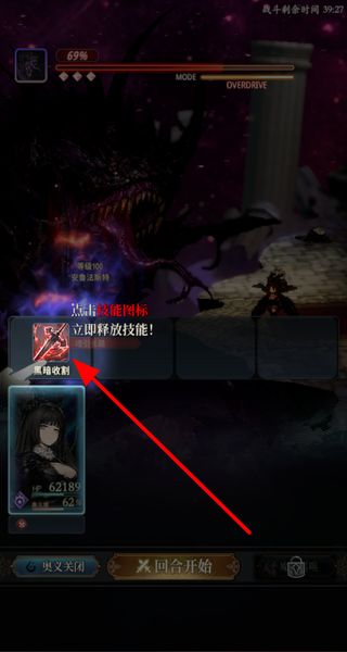 3、使用技能攻击BOSS,战斗中点击技能图标释放黑暗收割等技能攻击BOSS,削减其血量。
