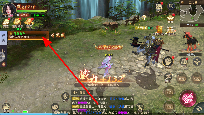 2、进入游戏后,会有主线任务指引,如回复先锋将魏续等任务,跟随任务提示,推进主线任务进程,在完成过程中提升角色战力。