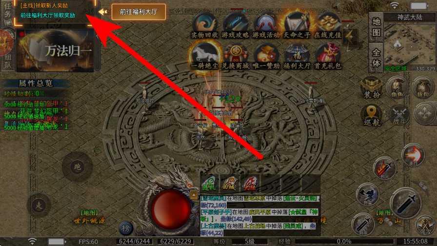 2、然后领取福利,找到前往福利大厅等提示,按照指引前往福利大厅,领取相应福利,这些福利能助力角色在热血世界中更好地发展。