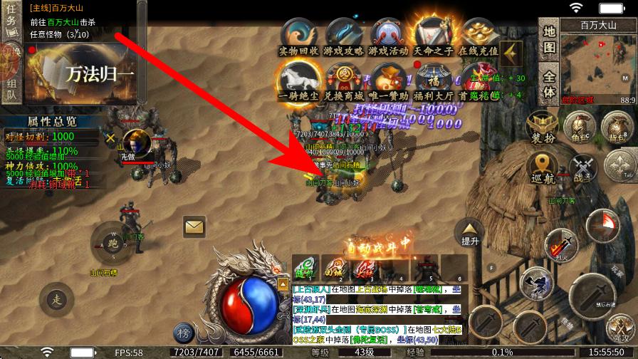 3、接着领取任务,在任务的界面,可以领取诸如前往百万大山等任务,了解任务目标,为后续传说地图杀怪完成任务做好准备。