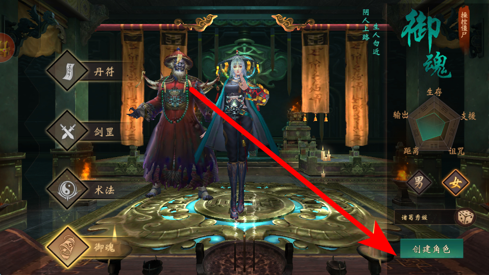 1、首先创建角色,在游戏初始界面,选择喜欢的角色形象等相关设定,然后点击创建角色按钮,完成角色创建,开启冒险之旅。