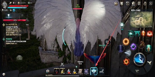1、点击对应功能按钮激活翅膀,借助翅膀实现飞行移动,调整角色位置,更灵活地探索场景区域。