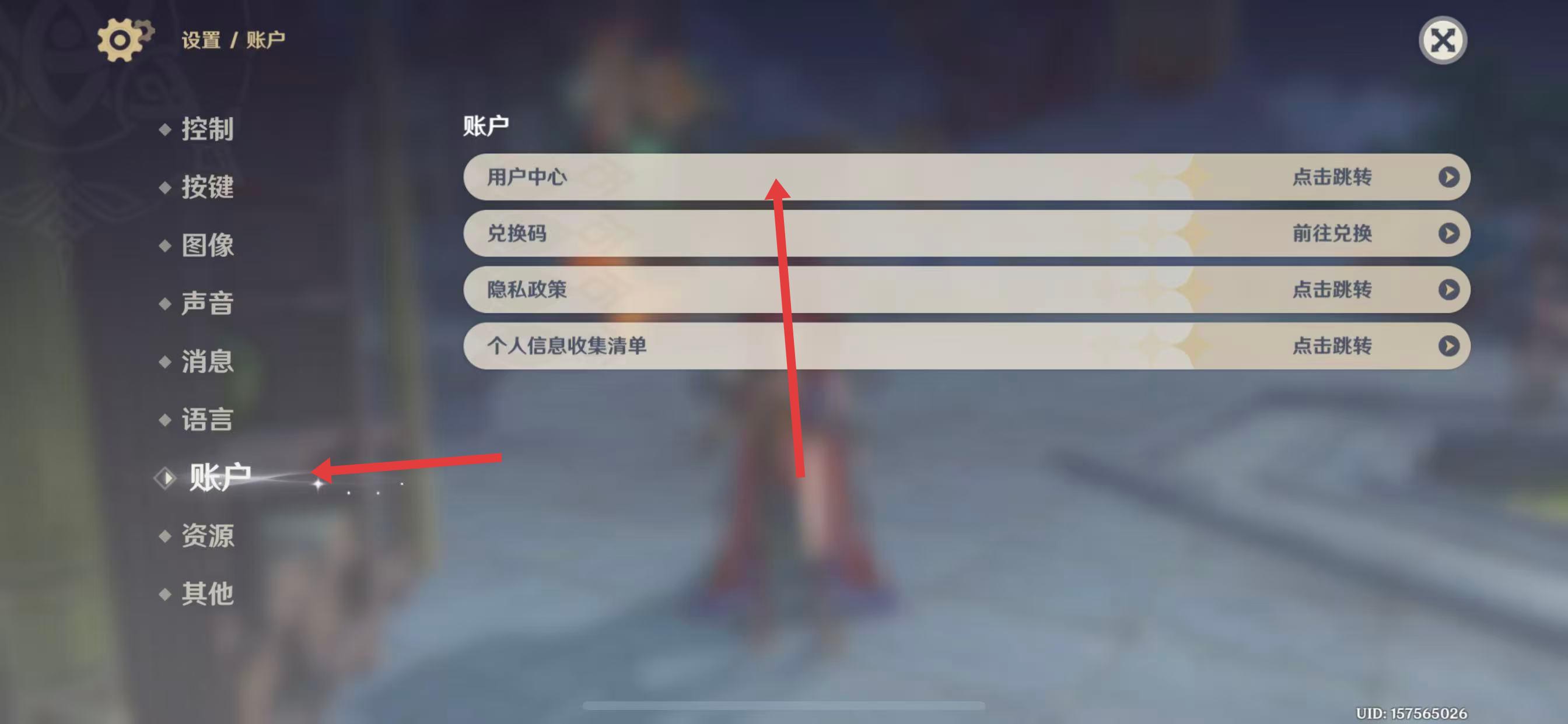 3、进入账户设置界面后,点击用户中心后的点击跳转,进入米哈游通行证页面。
