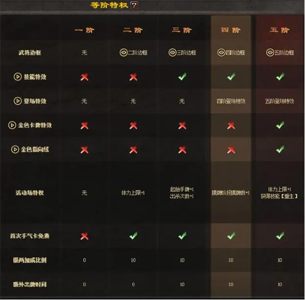 二、武将等阶对应特权