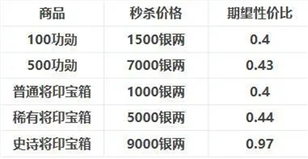 秒杀一般在大活动时有,可以用银两购买将印宝箱和功勋。