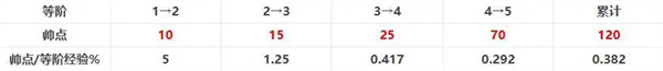 注:“帅点/等阶经验%”值可理解为提升帅点的性价比,该值越高,性价比越高。