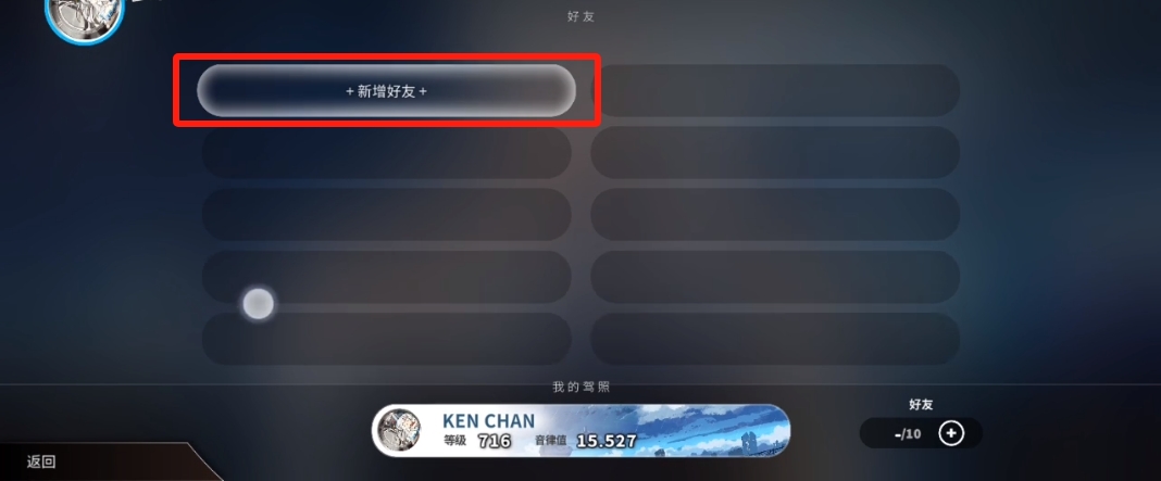 2、在社交界面除了当前的好友,还会有一个【添加好友】按钮,点击按钮去进行添加;