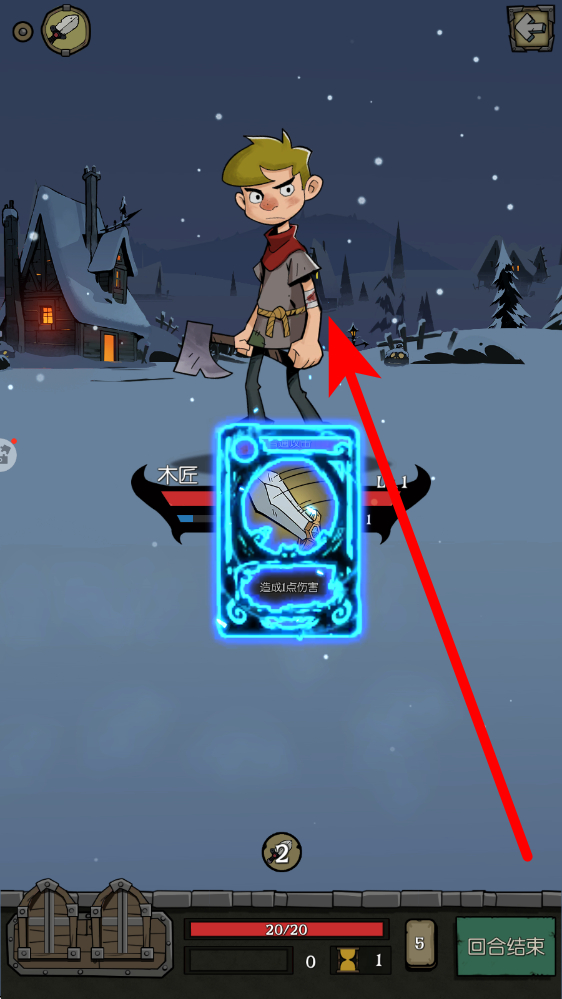 3、与木匠对战时,点击手牌中的基础攻击卡造成1点伤害,关注双方血量与回合数,把控卡牌释放节奏,熟悉回合制战斗流程,积累对战经验应对后续挑战。