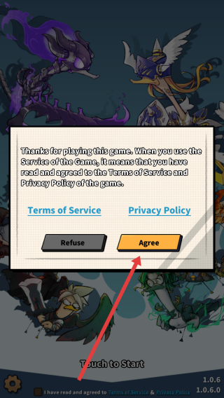 1、在Merge-2-Duck的服务条款弹窗中,点击黄色Agree按钮,同意Terms-of-Service与Privacy-Policy,进入游戏主界面。