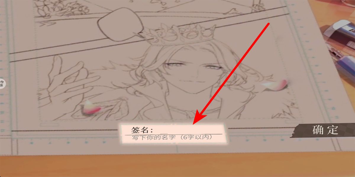 1、签名定制在角色绘图界面的签名栏,输入6字以内名称完成个性化设定,让剧情互动更具专属标识,从细节建立角色代入感,开启独特恋爱篇章。