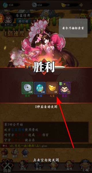 3、战斗胜利后领取奖励,获取银两、经验和元宝等资源,用于角色升级或解锁新内容。