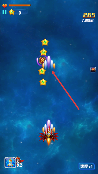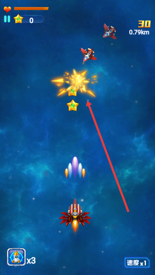 2、主动收集星星,积累数量可解锁奖励;遇到道具比如火箭、火力提升及时拾取,增强输出。
