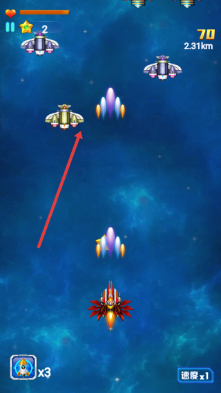 3、注意血量,血量低时避开密集火力,合理调节速度,灵活应对不同波次敌人,持续推进关卡。