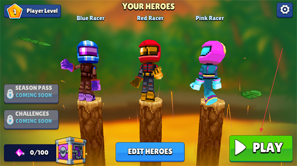 1、在YOUR-HEROES界面选择已解锁的英雄,点击右下角PLAY按钮即可进入对局。
