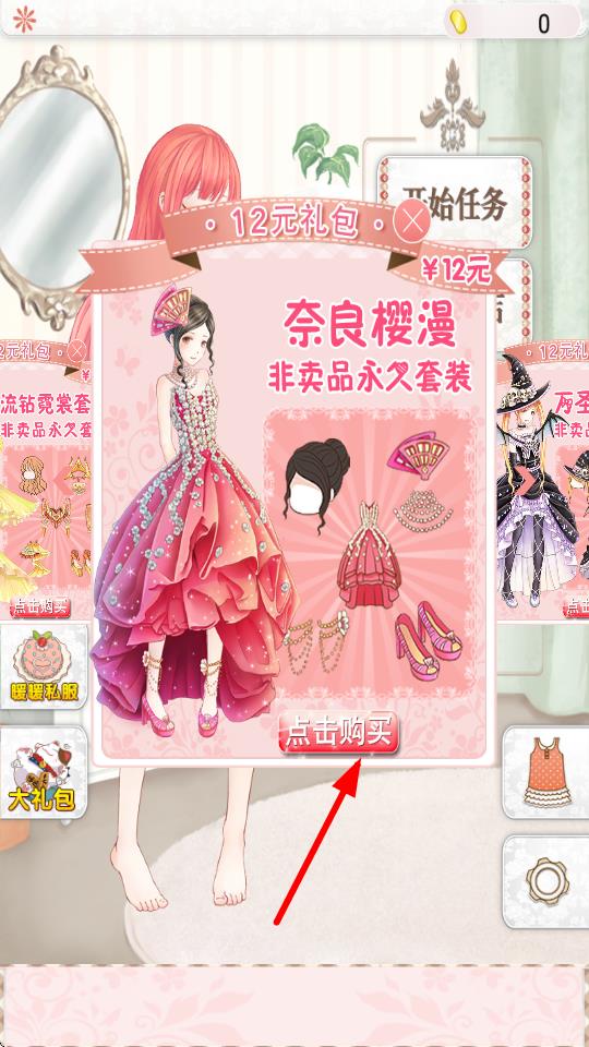 3、还可以进入服装店,主界面服装店,通过花费游戏内的钻石等货币,购买挑选搭配出具有公主风格的套装。