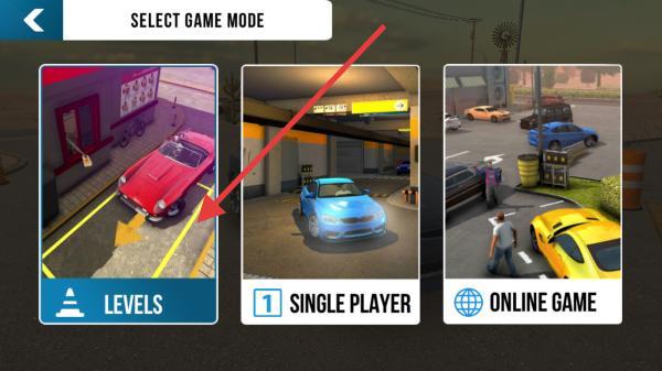 1、启动游戏后,主界面呈现关卡模式、单人模式、联机模式选项,若想体验循序渐进的停车挑战,点击进入关卡列表进入。