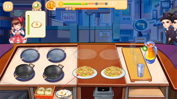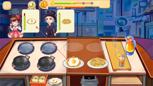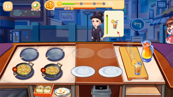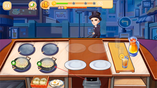 4、同时处理多位顾客的不同订单,高效烹饪和配送,获取金币和星级评价,提升夜市小吃店的经营等级。