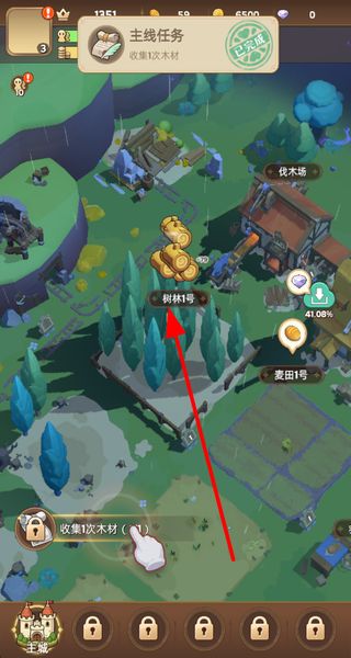 4、找到木材的资源点,点击收集资源,完成主线任务要求的收集次数,获取任务奖励,推进游戏进程。