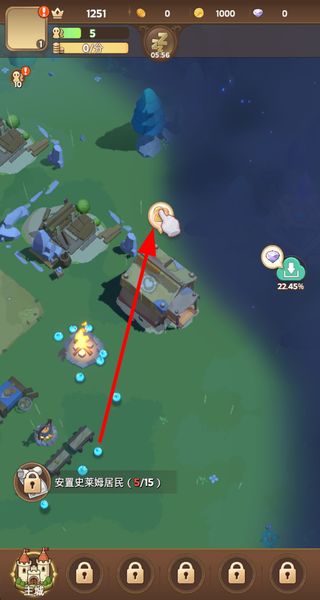 2、在领地场景中点击居民房屋的建筑,进行对应操作,完成安置居民的任务,逐步提升领地的居民数量。