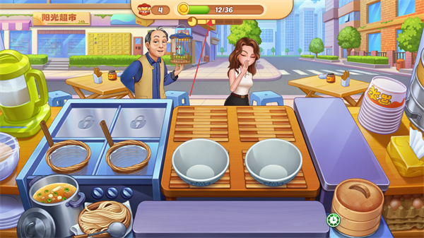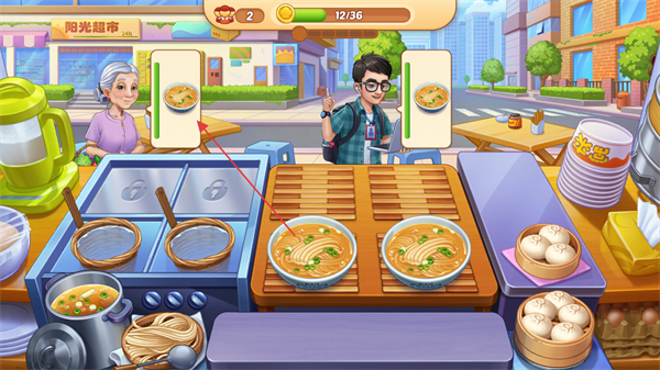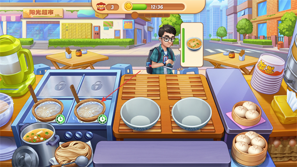 4、完成顾客订单后,获得金币奖励,积累金币可升级店铺或解锁新食材。