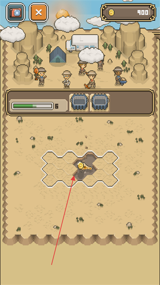 4、进入挖掘场景,点击化石挖掘区域,开始进行化石挖掘作业。