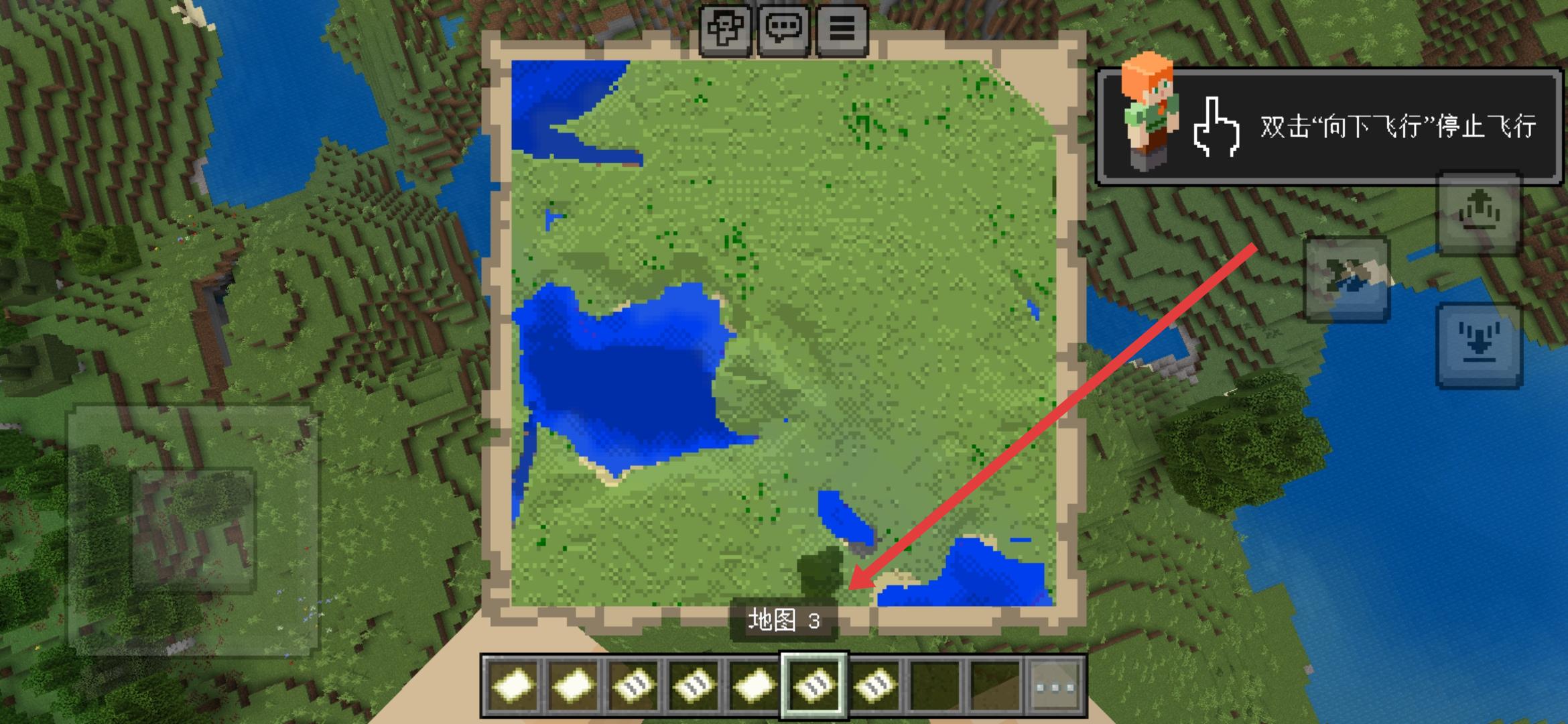 2、将合成的空白地图拿在手中,点击界面的创建地图或右键使用,激活地图的地形记录功能。