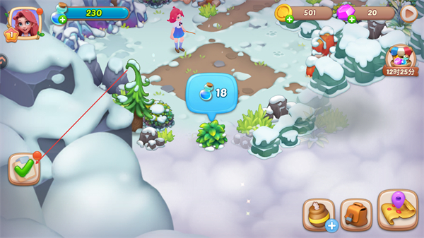 3、继续收集道具,提升道具数量,同时清理场景障碍,推进流程。