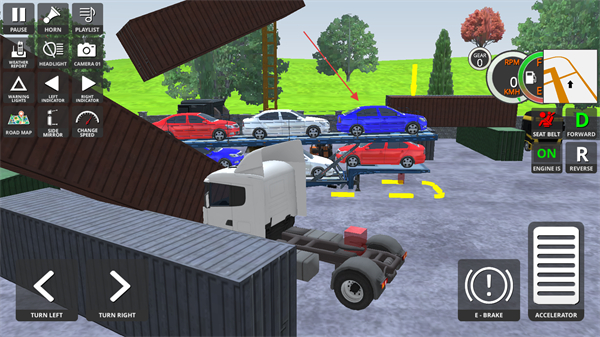 2、操控卡车穿路况:启动卡车后,灵活运用驾驶技巧应对各类道路状况,避开障碍物、平稳通过险峻路段,保障行车安全与货物完好。