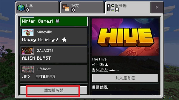 5、最后我们可以在服务器的列表中看到已经添加的服务器,点击服务器就可以看到右边的【加入服务器】点击即可加入。
