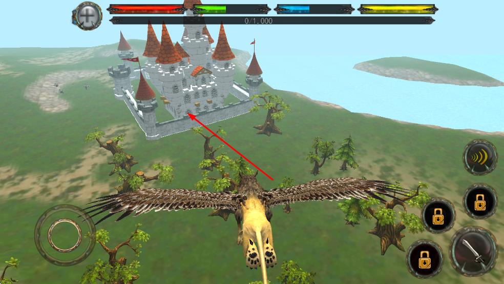2、操控狮鹫朝着城堡方向飞行,留意城堡的建筑细节和周围环境,调整飞行轨迹,确保能顺利抵达城堡区域,为后续行动做准备。