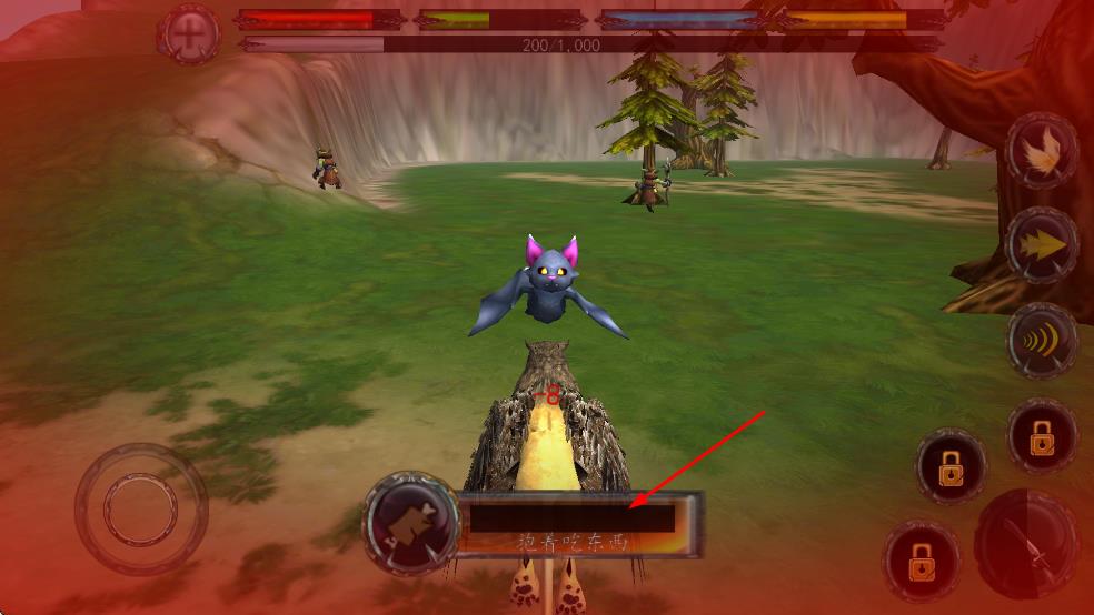 4、战斗过程中,遇到蝙蝠状敌人,当屏幕出现“抱着咬东西”的提示时,按照提示操作,让狮鹫与蝙蝠状敌人进行互动战斗,持续攻击直至敌人被击败。