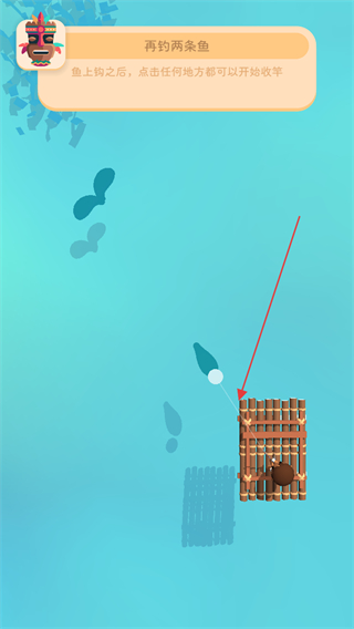 1、操控竹筏移动,按提示找水中阴影,跟随屏幕下半部分移动,完成找鱼目标。