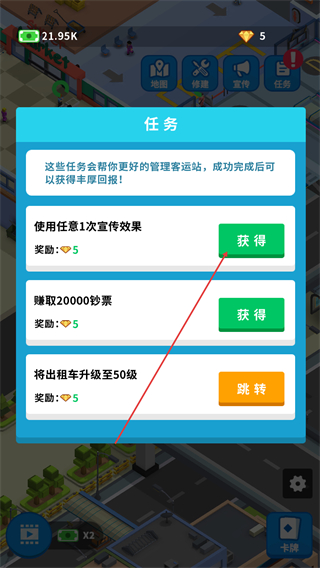 4、回到任务界面,点击获得领取宣传任务的奖励钻石。