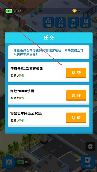 1、在任务界面选择使用任意1次宣传效果任务,点击跳转进入宣传界面。