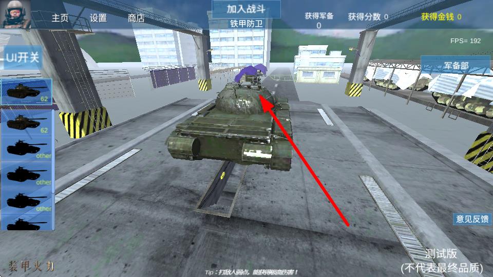 1、选择箭头指向坦克,战斗准备状态,该坦克具备特定的火力和防护能力,不同战场环境作战。