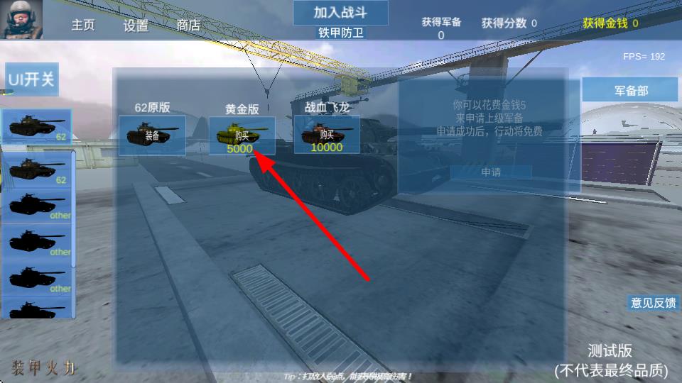 3、点击购买黄金版坦克,可以获取属性更优的坦克,提升了战斗的能力,在对战中更具优势。
