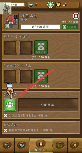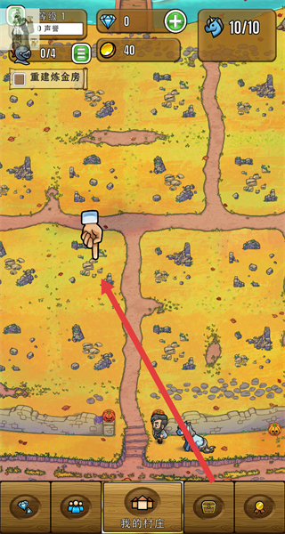 1、在“我的村庄”界面,点击场景中的空地,触发建筑搭建流程,完成炼金术士等建筑的建造。