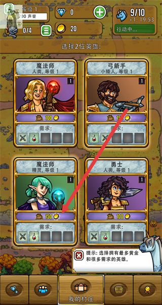 4、在英雄选择界面,按照提示挑选拥有最多黄金且需求较多的英雄,招待该英雄以促进商品消费。