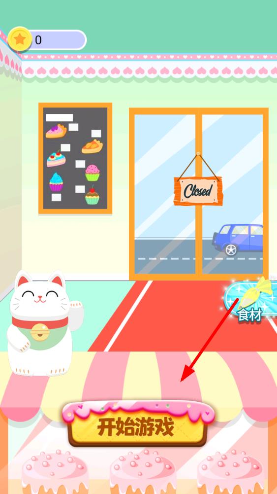 1、打开app后进入游戏主界面,点击开始游戏按钮,开启甜品制作经营之旅。