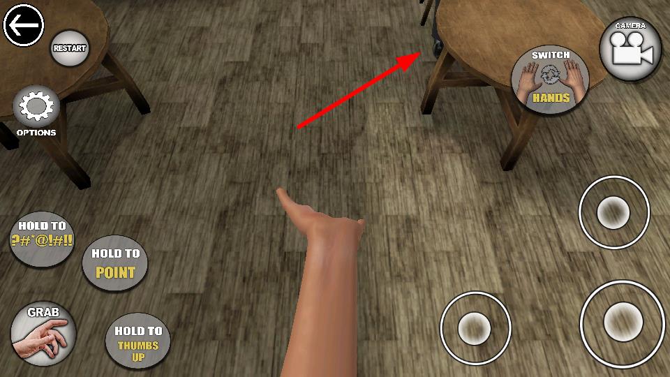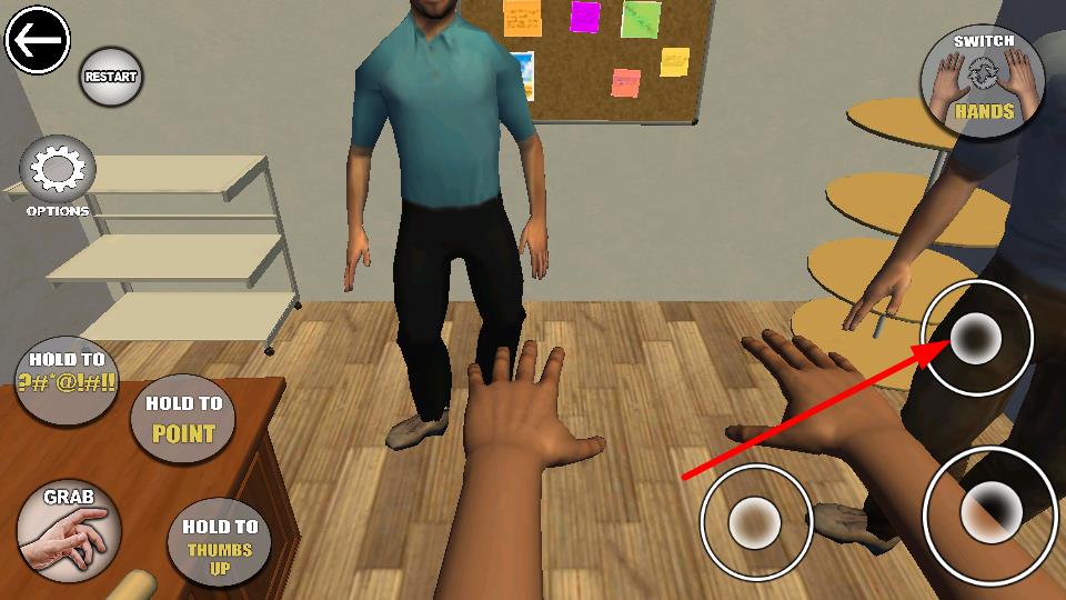 4、点击右侧的操作按键,操控手部进行相应动作,场景中的人物或物品互动,推动任务。
