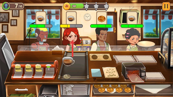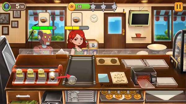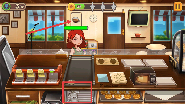 4、再推动咖啡杯移动给顾客,即可获得金币奖励。