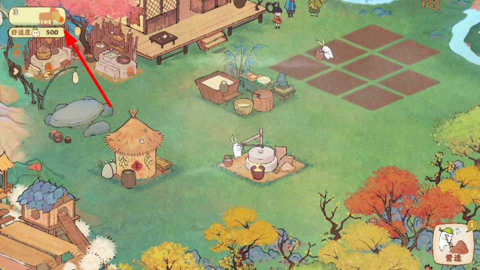 1、打开桃源深处有人家游戏,进入主界面,在屏幕左上角找到箭头显示区域,点击它,进入个人信息相关界面。