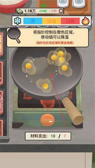 4、控制火候,将指针保持在橙色区域,避免菜过热或烧糊,完成菜品制作以满足顾客需求,积累资金经营大排档。