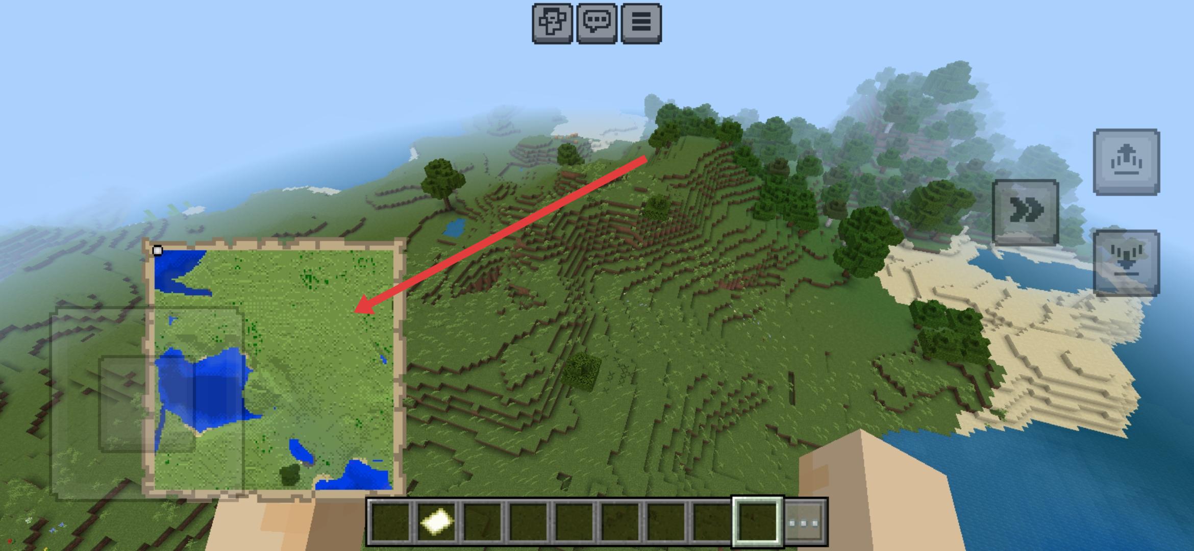 2、收集甘蔗制作纸张,与指南针合成地图,展开地图查看周边,标记的建筑群落大概率是村庄,借助地图高效定位。