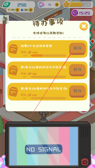 1、在待办事项界面,选择招募3个无业游民房客并点击前往,推进该任务。