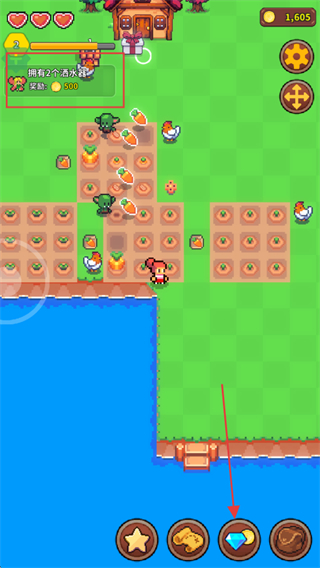 4、完成洒水器的放置后,点击左上角的任务即可领取金币。