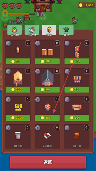 2、进入商店后,在建筑板块找到洒水器,点击即可购买。